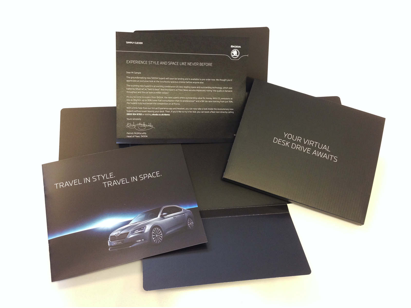 As part of the same campaign we created a virtual reality app, which allowed people to take an exclusive look around the new Superb. We designed a Google Cardboard headset, along with a premium DM pack to send to prospective business customers